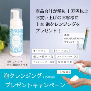 ラッシュグランディール泡クレンジングを税抜1万円以上お買い上げのお客様にプレゼントします。